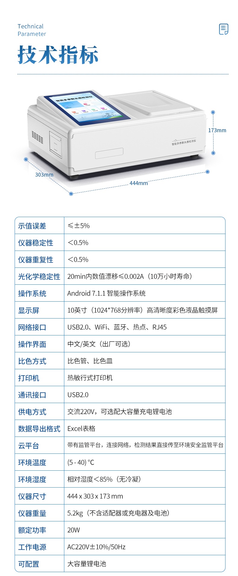 仪器尺寸:444 x 303 x 173 mm;