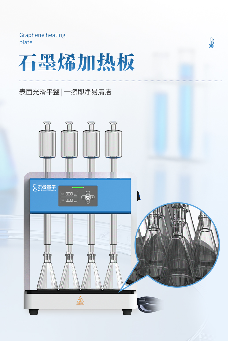 3. 安全性能优:采用玻璃毛刺回流管代替球形回流管,并以风冷+水冷技术取代传统自来水冷却方式,既可以节水又能使仪器规范化,同时具备过热断电等功能,提高了仪器使用的安全性。 4.面板易清洁:采用石墨烯加热板,表面光滑、平整,表面污渍一擦即净,可减少操作不当对仪器的损坏;