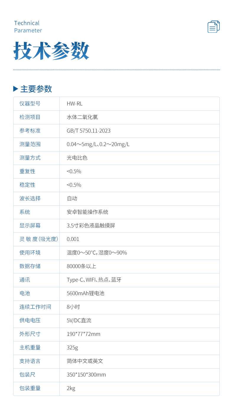⑥便携式体积小,重量轻,方便户外检测;