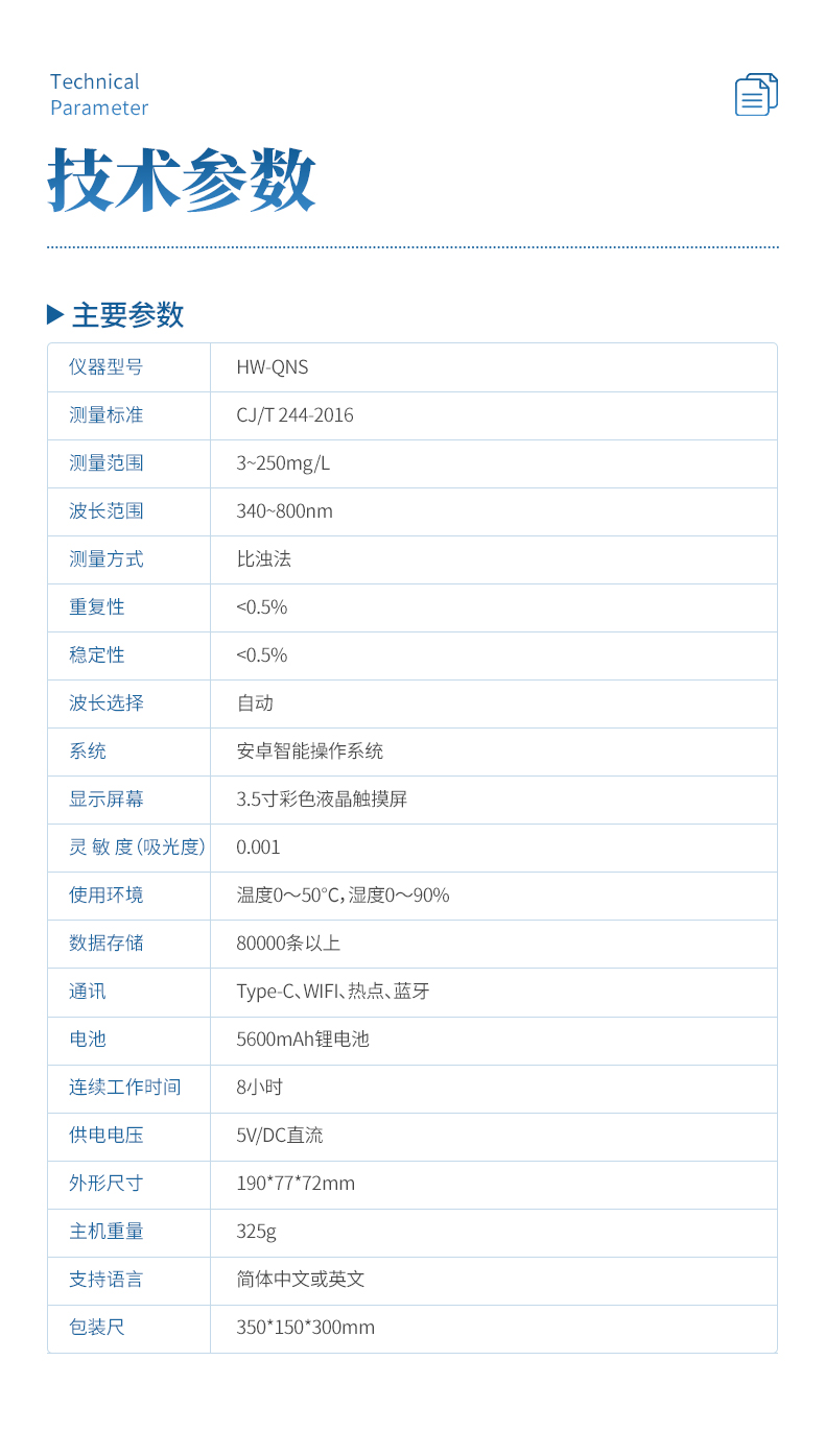HW-QNS水质检测仪是一款适用于游泳场馆、户内外游泳池、水上乐园、温泉浴池、等领域的检测仪,配合快速显色检测试剂,可“快速、简单、准确、稳定”进行测量,拥有精美的外观造型,简单的操作界面,准确的检测系统,帮助用户获得精细的数据,可更准确、有效的分析水体状况,提前预防养殖风险,及时避免损失。
