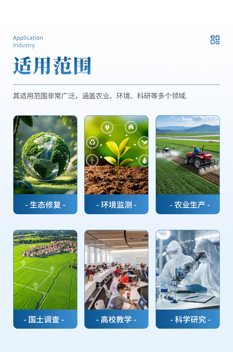 1、土壤养分:●土壤总有机碳TOC、土壤碳氮比、土壤铵态氮、土壤有效磷、土壤速效钾、土壤硝态氮、土壤水解氮、土壤全氮、土壤全磷、土壤全钾、土壤有机质(丘林法)、土壤有机质(浸提法)、PH值、含盐量、水分。●土壤中微量元素:土壤钙、土壤镁、土壤硫、土壤硅、土壤硼、土壤铁、土壤铜、土壤锰、土壤锌、土壤氯。