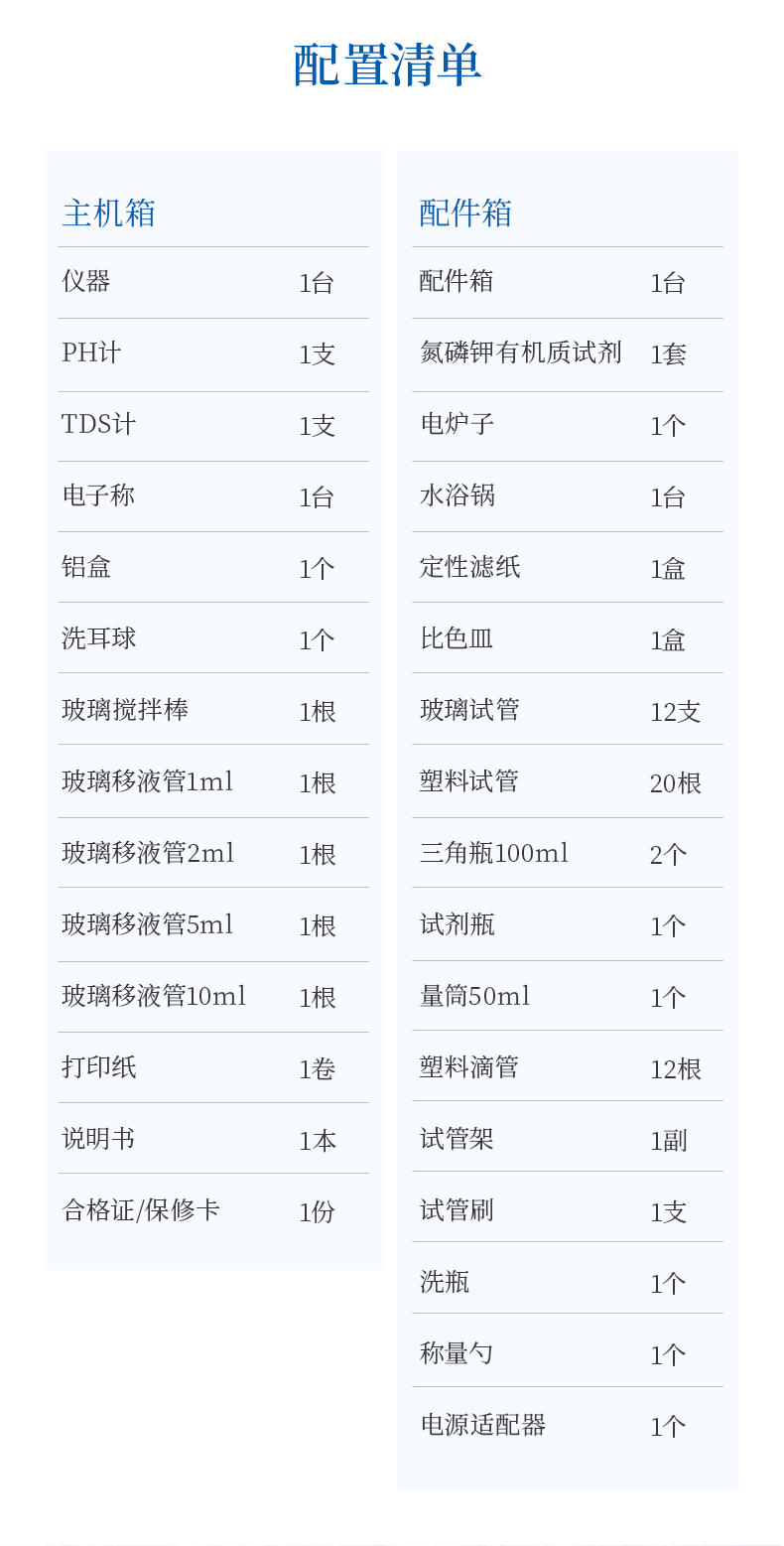 八、科研级土壤肥料养分检测仪配置清单: