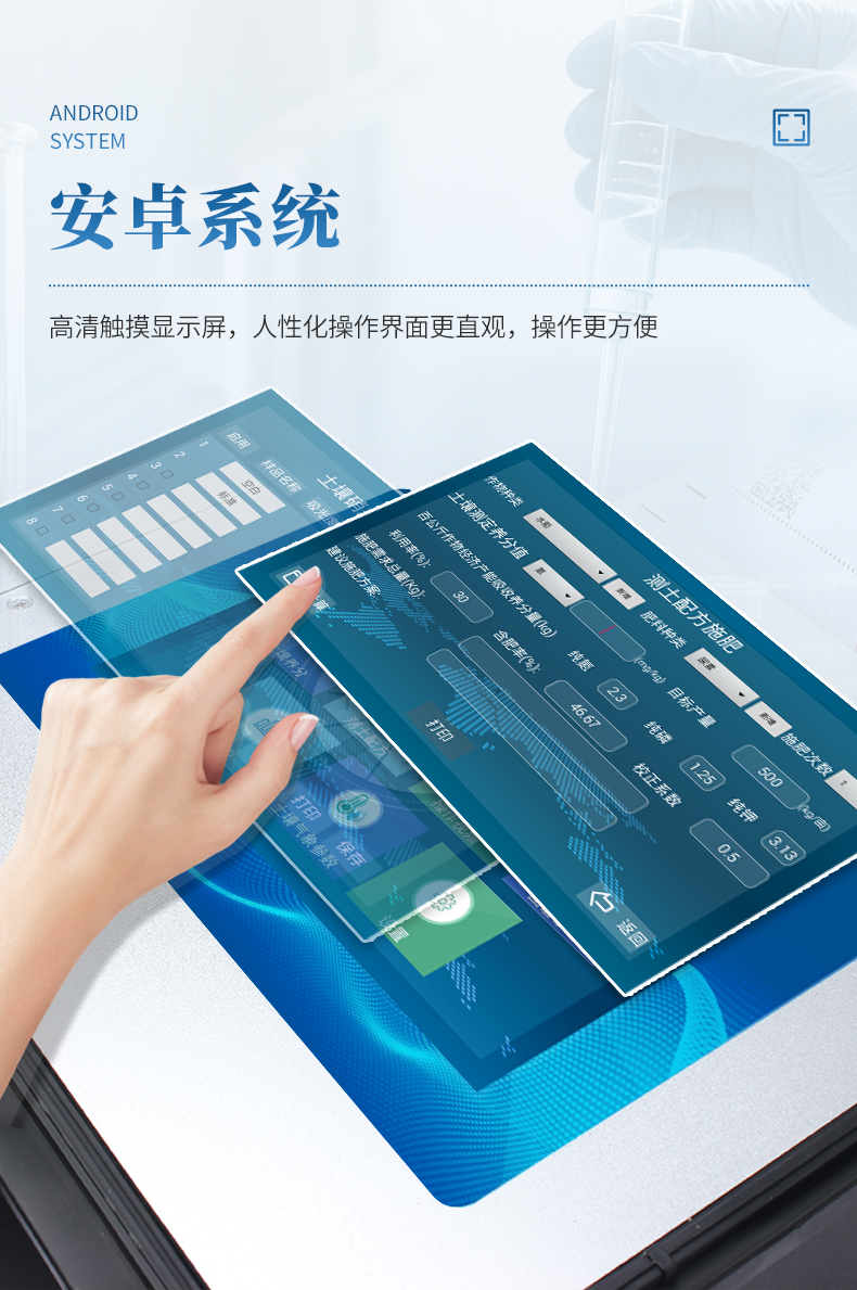 测试一个肥料样(N、P、K)≤50分钟,同时检测三个肥料样品(N、P、K)≤1.5小时。