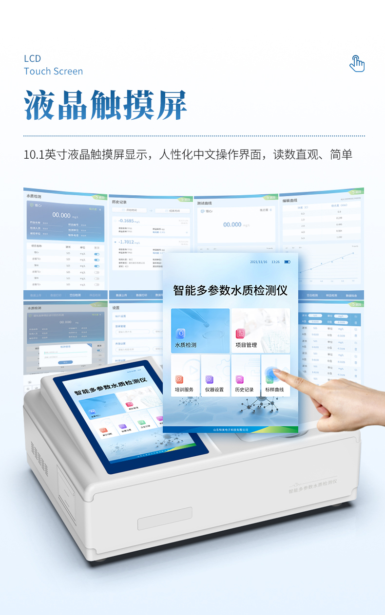 2、10.1英寸液晶触摸屏显示,人性化中文操作界面,读数直观、简单。