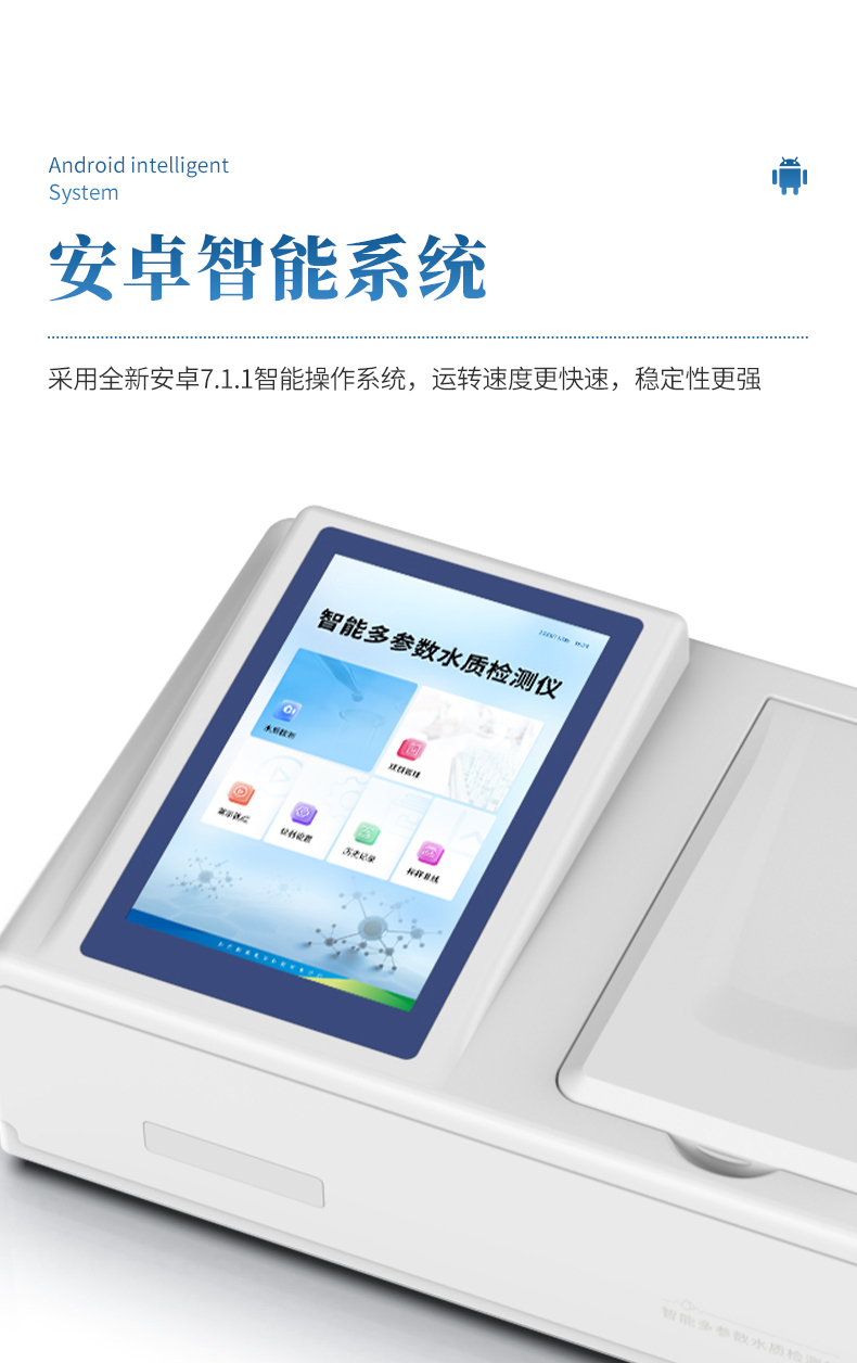 智能COD氨氮总磷检测仪是依据《快速消解分光光度法(HJ/T 399-2007)》设计制造,主要检测水质COD、氨氮、总磷的含量;本仪器兼具智能数据分析功能,图表、列表显示数据,分析一目了然;高清晰度彩色液晶触摸显示屏,Android智能操作系统,中文显示界面,中英文键盘,人性化操作,使用更简单。
