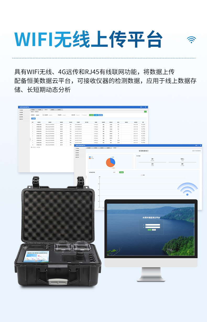 7、仪器具有WIFi无线、4G远传和RJ45有线联网功能,将数据上传;