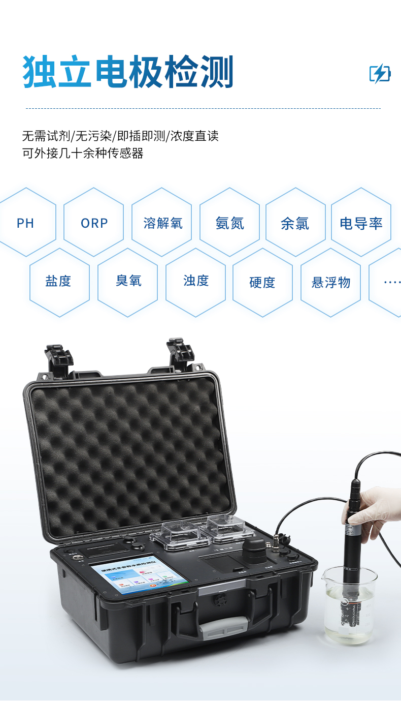 10、内置传感器检测模块,可同时插入4个不同指标传感器同时检测,插入即测,浓度直读。