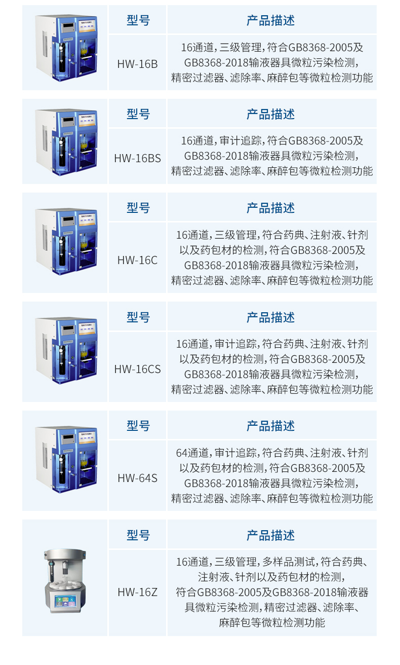 ●满足《中国药典》可直接检测注射液、无菌粉、输液器具及滤除率的微粒含量及大小,符合GB8368-2005及GB8668-2018标准。