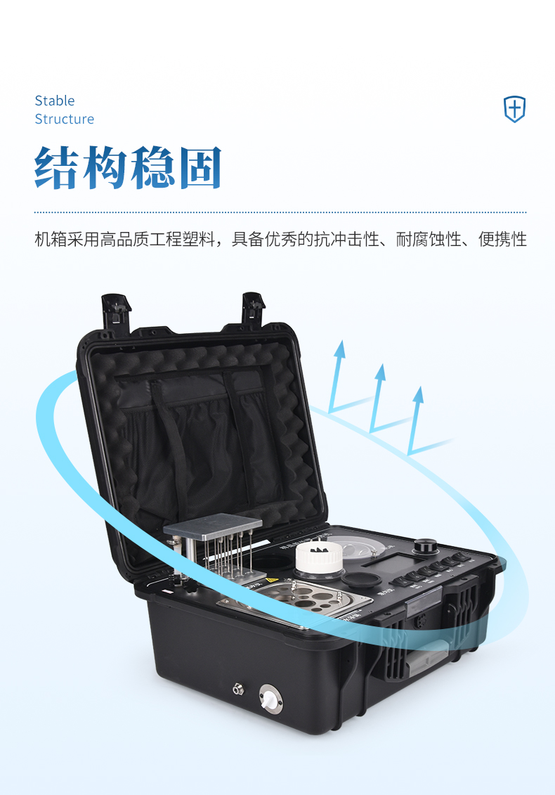 2、结构稳固,机箱采用高品质工程塑料,具备优秀的抗冲击性、耐腐蚀性、便携性。