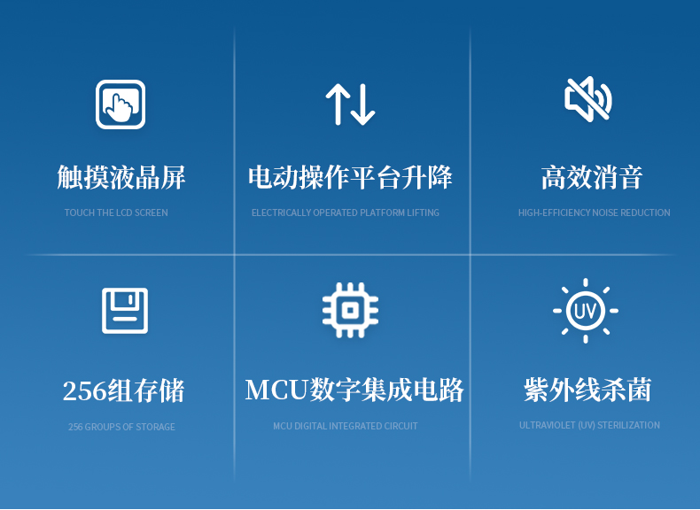 6.设备配置电动操作平台升降、 LED 照明系统、紫外杀菌功能;