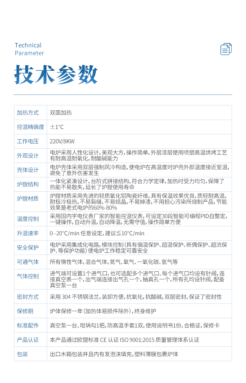 | 保修期 | 炉体保修一年(加热体易损件除外),终身维护 |