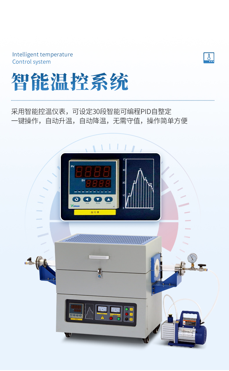 | 温度控制 | 采用国内宇电仪表厂家的智能控温仪表,可设定 30段智能可编程PID自整定,一键操作, 自动升温, 自动降温,无需守值,操作简单方 便。 |