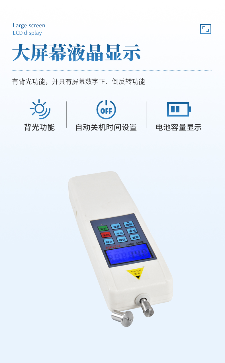 最大负荷:500N (其他量程可定制,N、Kg和ib三种单位可自动转换)